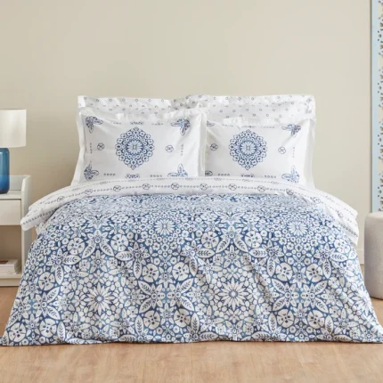 ست لحاف دو نفره 100% نخي Persly آبي طرحدار كاراجا هوم 200.22.12.0088