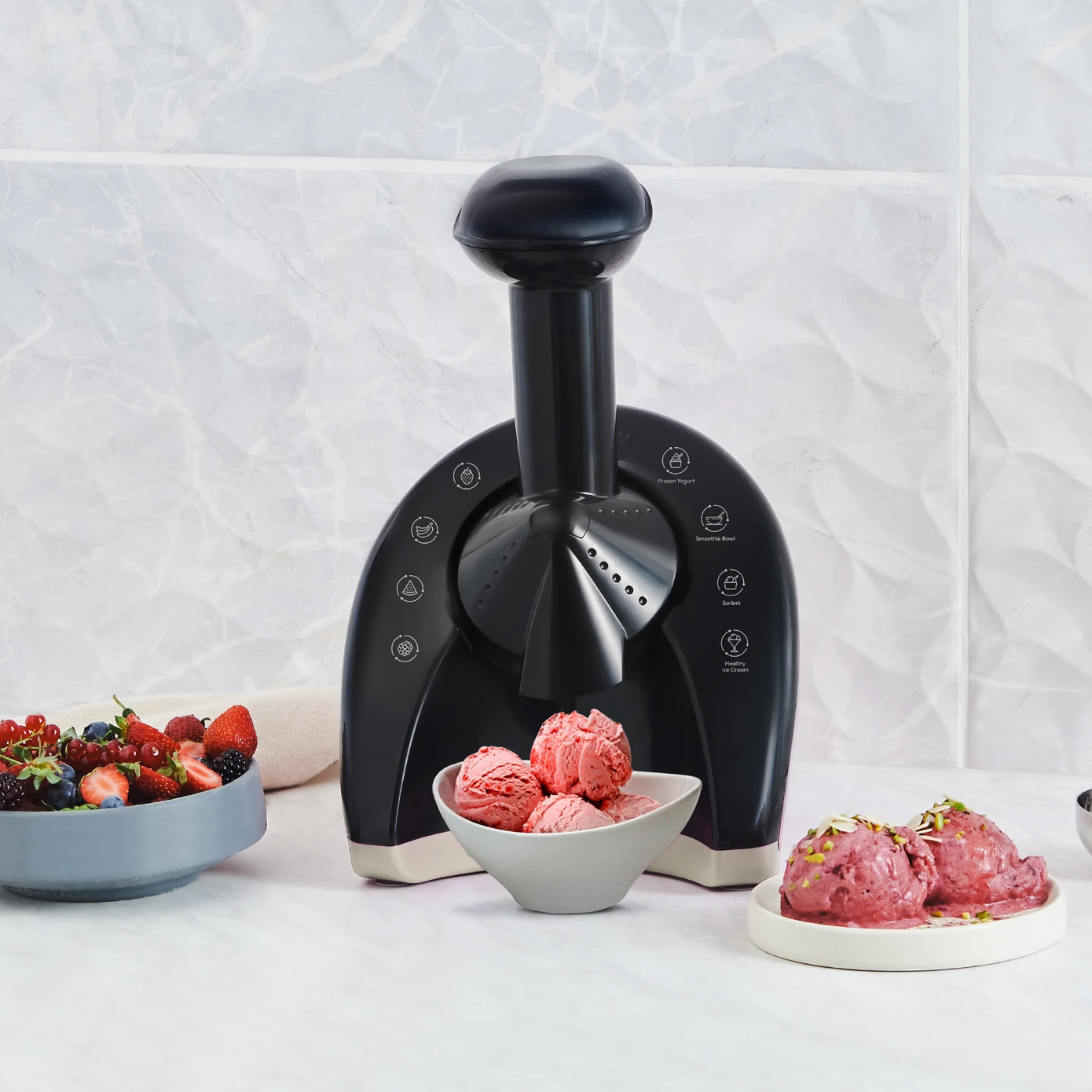 • شما می‌توانید به جای خرید محصولات آماده از بیرون، دسرها و بستنی‌های میوه‌ای منجمد سالم را با غلظت و طعم دلخواه خود، برای خود و فرزندانتان تهیه کنید .