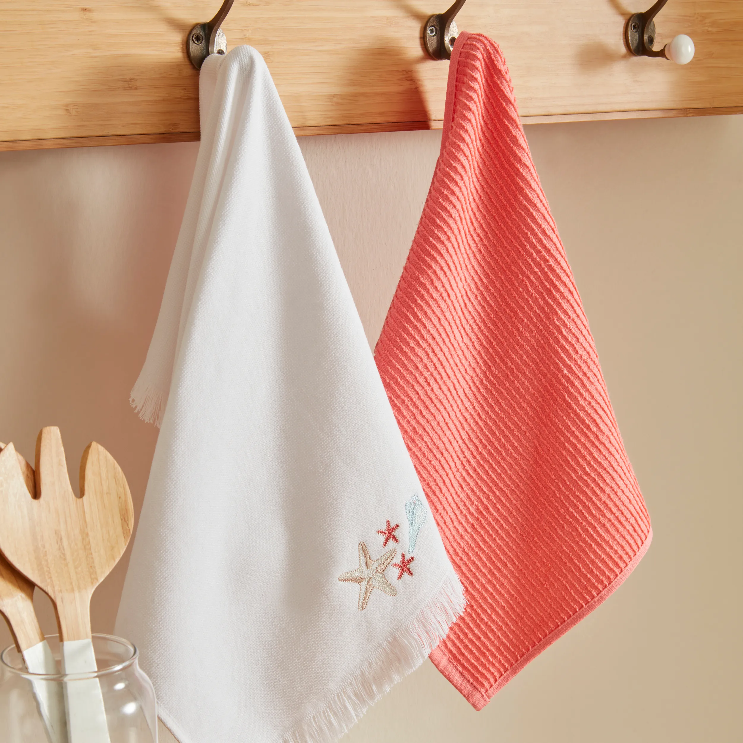 حوله آشپزخانه 100% پنبه 2 تكه قرمز سفيد ستاره دريايي كاراجا هوم 200.22.11.0332