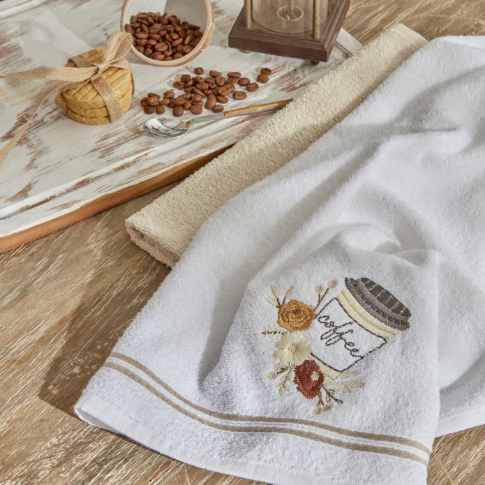 حوله آشپزخانه دو تکه ۱۰۰٪ پنبهای کاراجا هوم کافی بژ، ۴۰x۶۰ سانتیمتر