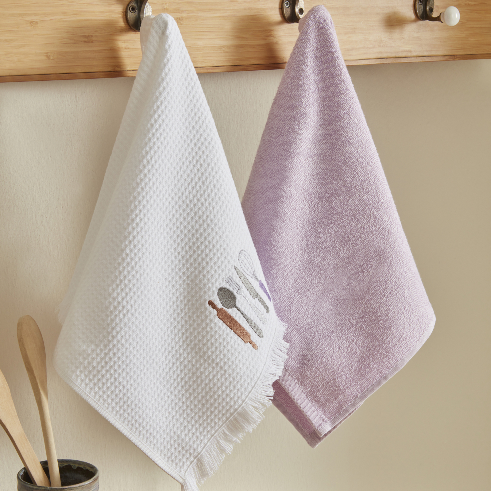 حوله آشپزخانه 100% پنبه 2 تكه نوشيدني سفيد صورتي كاراجا هوم 4224