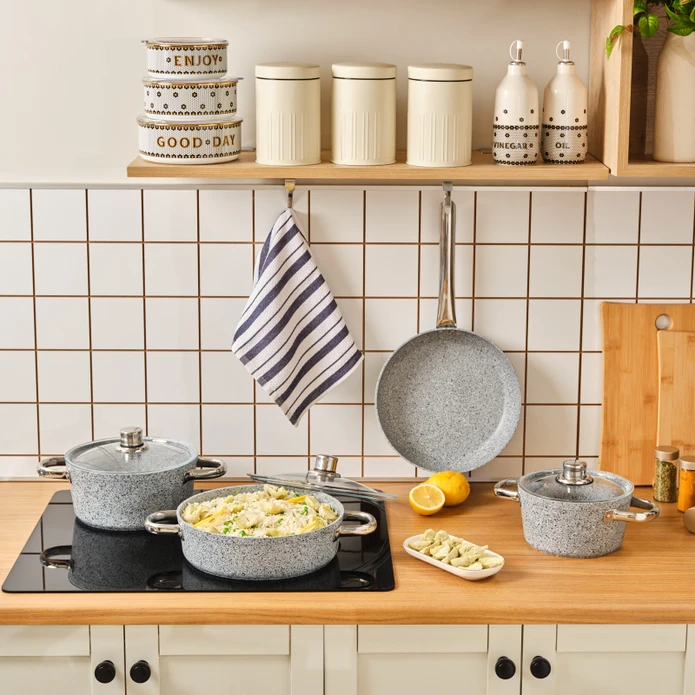 ست جهازيه ماهي تابه و قابلمه 14 پارچه رژيمي گرانيت خاكستري 4767