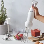 - به لطف موتور قدرتمند ۱۰۰۰ واتی و اتصالات فولادی همزن، این دستگاه به شما امکان میدهد به سرعت خمیر کیک، خامه، غذای کودک، میلک شیک و غیره را آماده کنید.