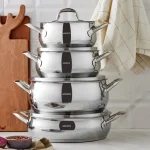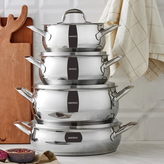 سرویس قابلمه ۸ پارچه استیل کاراجا اتیلر با مواد اولیه باکیفیت و طراحی شیک، به آشپزخانه شما زیبایی میبخشد. این محصول که با دقت و ظرافت و مواد اولیه مرغوب طراحی شده است، غذای خوشمزه را به میز شما و ظرافت را به آشپزخانه شما میآورد. کاراجا اتیلر با طراحی زیبا، یک سرویس قابلمه باکیفیت و متمایز است. این محصولات به آشپزخانه شما ارزش تزئینی میبخشند و همچنین به دلیل کاربردی بودنشان قابل توجه هستند. کاراجا اتیلر انواع قابلمهها را در اندازههای مختلف ارائه میدهد تا در تلاشهای آشپزی شما به شما کمک کند.